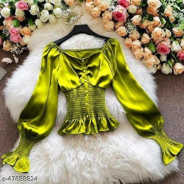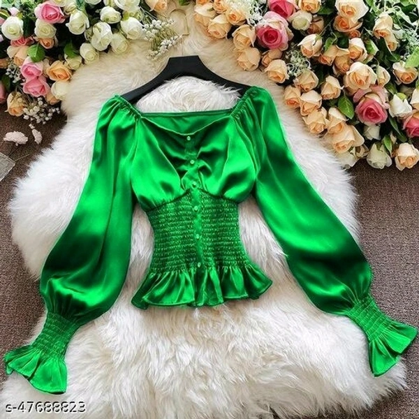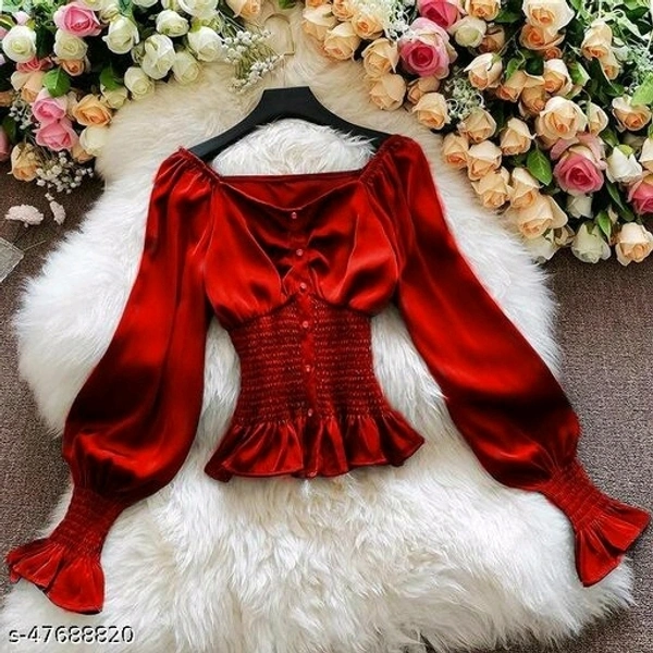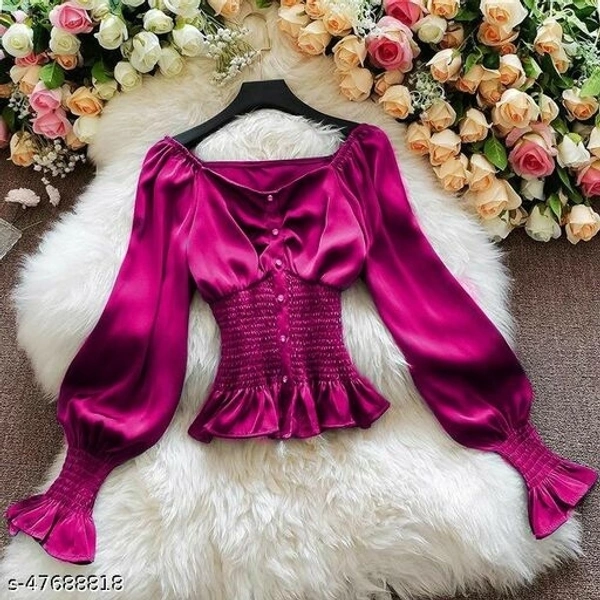 Fancy Ravishing Women Tops & Tunics Fabric: Satin Sizes: S (Bust Size: 32 in, Length Size: 23 in) XL (Bust Size: 38 in, Length Size: 26 in) L (Bust Size: 36 in, Length Size: 25 in) M (Bust Size: 34 in, Length Size: 24 in) XXL (Bust Size: 40 in, Length Size: 27 in) High quality imported fabric satin top Country of Origin: India