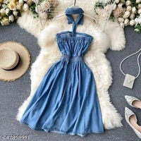 Classy Fashionable Women Dresses Fabric: Denim Sleeve Length: Sleeveless Pattern: Self-Design Multipack: 1 Sizes: XXS (Bust Size: 30 in, Length Size: 40 in) S (Bust Size: 32 in, Length Size: 40 in) XS (Bust Size: 30 in, Length Size: 40 in) M (Bust Size: 34 in, Length Size: 40 in) Country of Origin: India