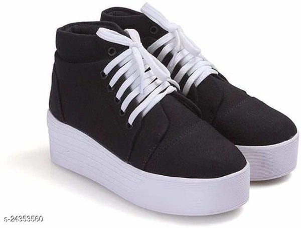 Stylish Women's Mesh Black Sneakers Material: Mesh Sole Material: Neolite Pattern: Textured Fastening & Back Detail: Lace-Up Casual shoes for girls with high heels. It is made of mesh material upper with perfectly stitched corners. High quality insole laces add up to the quality and looks of the shoe. It is a comfortable yet beautiful shoe for all the girls. Sizes: IND-7, IND-6, IND-8, IND-3, IND-5, IND-4 Country of Origin: India