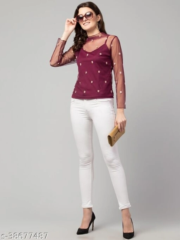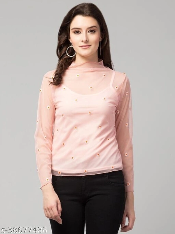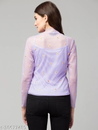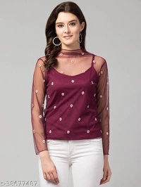 Trendy Elegant Women Tops & Tunics Fabric: Net Sleeve Length: Long Sleeves Pattern: Embroidered Multipack: 1 Sizes: Free Size (Bust Size: 39 in) XXS (Bust Size: 30 in) S (Bust Size: 34 in) XS (Bust Size: 32 in) L (Bust Size: 38 in) M (Bust Size: 36 in) SET- Two piece Country of Origin: India