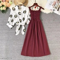 Trendy Retro Women Dresses Fabric: Crepe Sizes: S (Bust Size: 36 in, Length Size: 52 in) XL (Bust Size: 42 in, Length Size: 52 in) L (Bust Size: 40 in, Length Size: 52 in) M (Bust Size: 38 in, Length Size: 52 in) Country of Origin: India