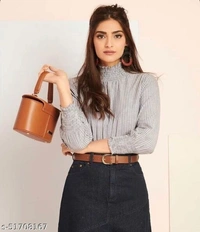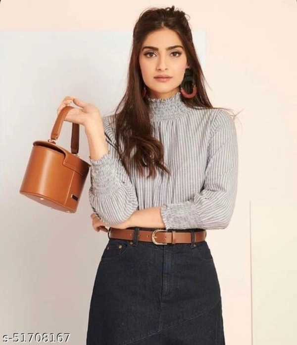 Urbane Latest Women Tops & Tunics Fabric: Cotton Sleeve Length: Long Sleeves Pattern: Striped Sizes: S (Bust Size: 34 in) XL (Bust Size: 40 in) XS (Bust Size: 32 in) L (Bust Size: 38 in) M (Bust Size: 36 in) WOMEN TRENDY TOP Country of Origin: Indiaj