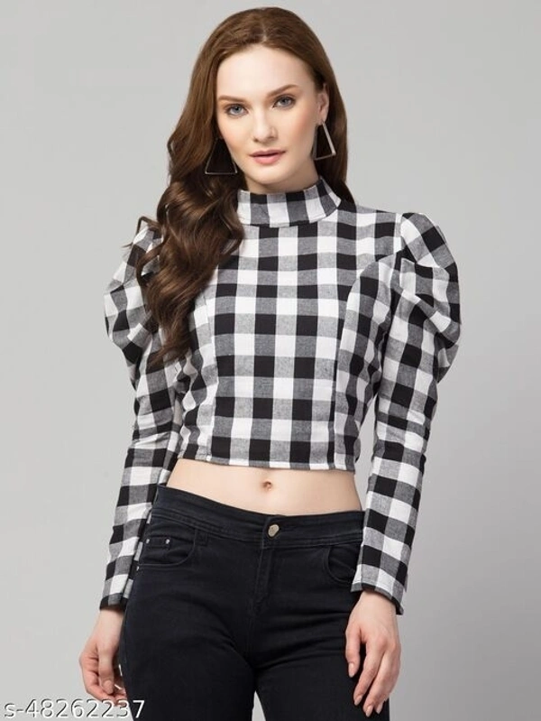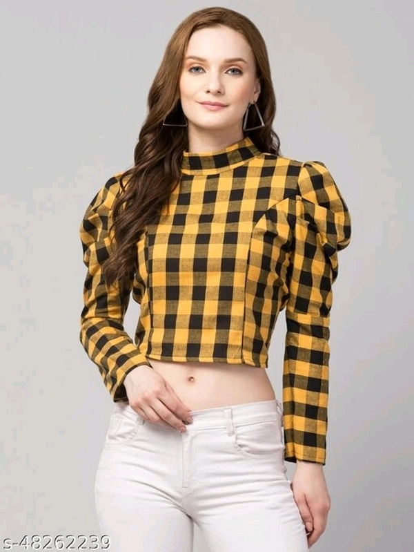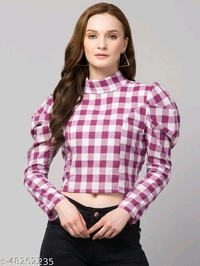 Urbane Ravishing Women Tops & Tunics Fabric: Cotton Sleeve Length: Long Sleeves Pattern: Checked Multipack: 1 Sizes: L (Bust Size: 38 in, Length Size: 20 in) M (Bust Size: 36 in, Length Size: 18 in) Very attractive cotton women tops. Neck is high and sleeves are full. Closure is backside with zip. Sleeves are flared on shoulders. Pattern is checked. Country of Origin: India